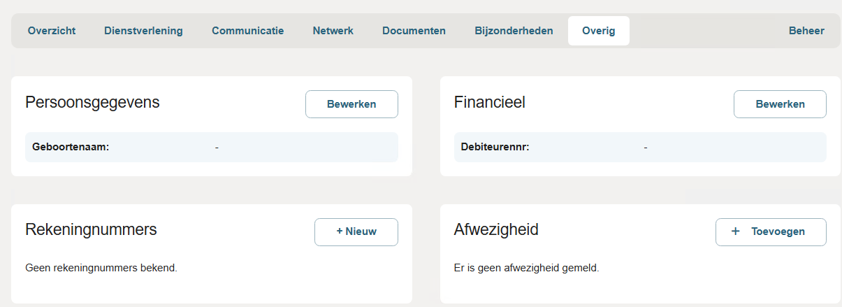 In dit artikel wordt toegelicht wat er op deze tabs wordt aangeven en wat hier kan worden toegevoegd, bewerkt, verwijderd etc.