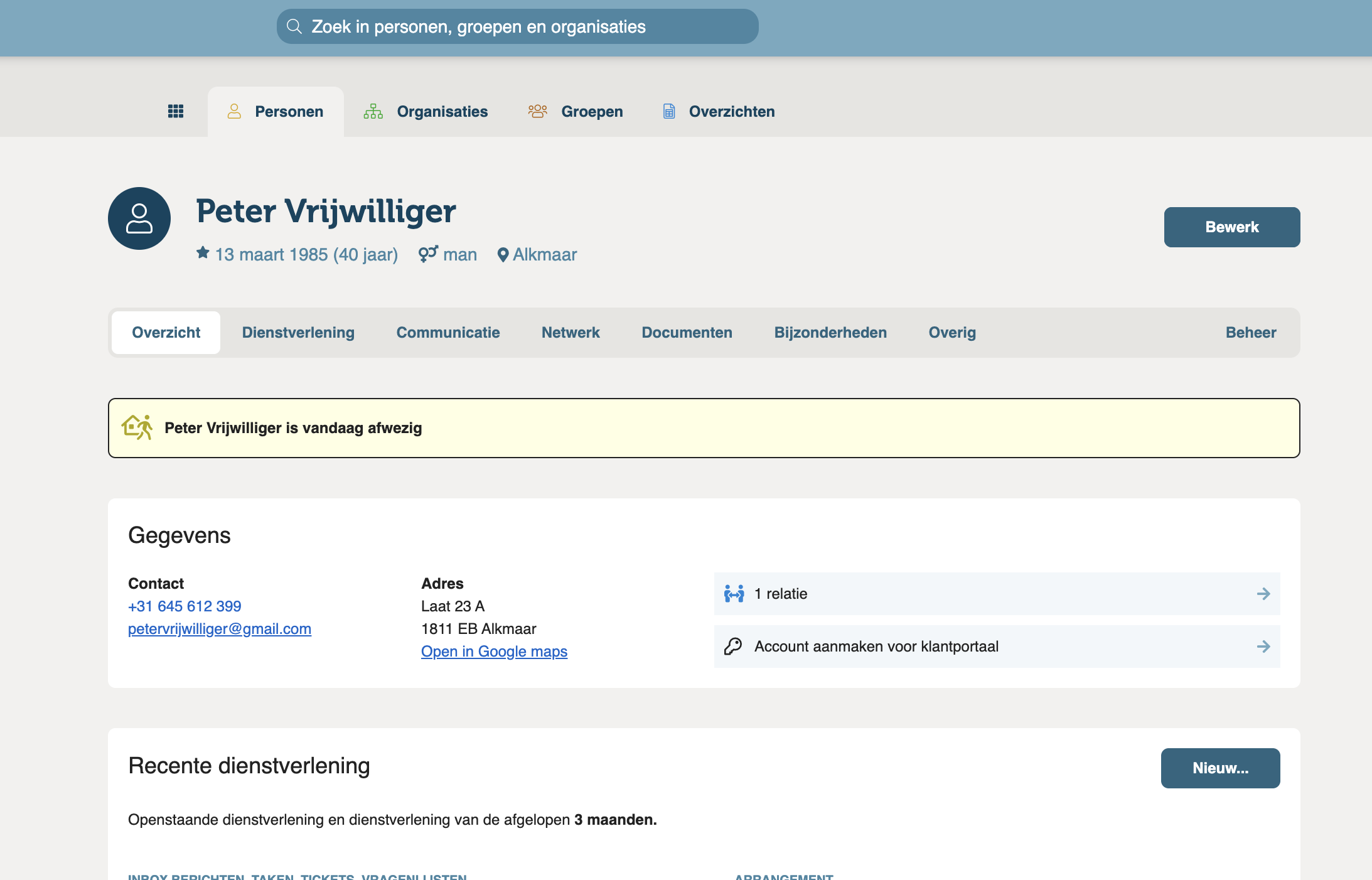 RegiCRM: duidelijk zichtbaar dat iemand afwezig is