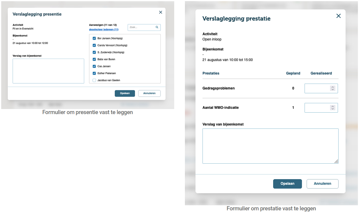 - Nieuw bij presentie: je kunt nu ook bij presentie een verslag schrijven. Voorheen kon dit alleen bij prestatie via het opmerkingenveld. In de nieuwe schermen heet dit veld nu duidelijk “Verslag”.
