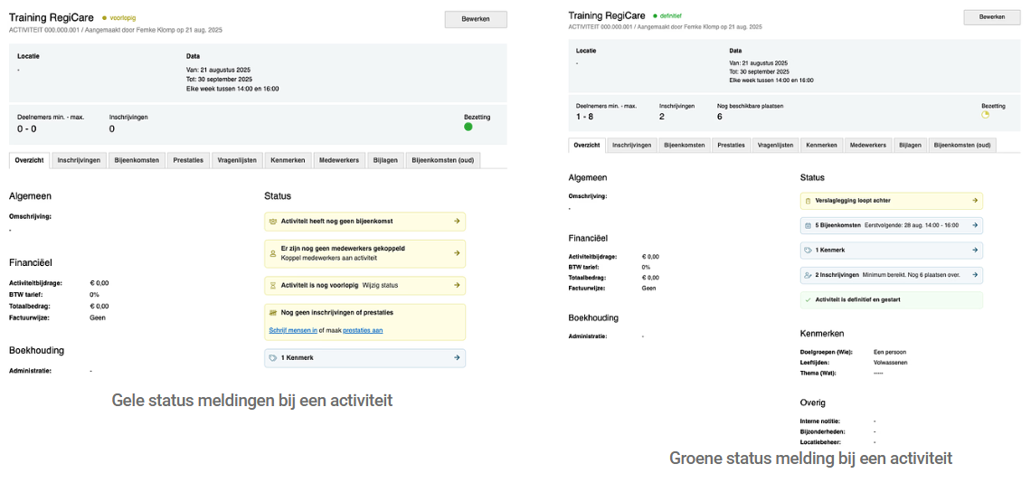 In RegiAct tonen we voortaan helder de status van je activiteit met duidelijke meldingen. Zo zie je in één oogopslag: