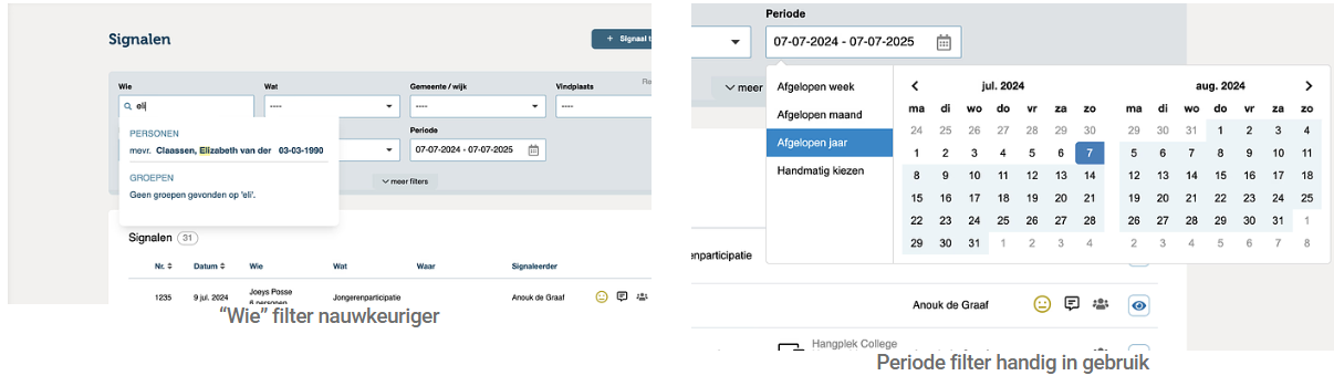 - Het zoekveld “Wie” is nu veel nauwkeuriger en toont specifiek de personen en groepen die minimaal één signaal hebben.