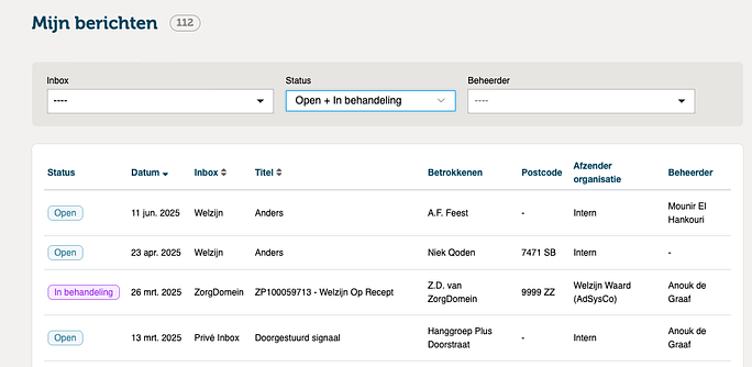 In RegiInbox is een handige nieuwe filteroptie toegevoegd onder status: “open + in behandeling”.