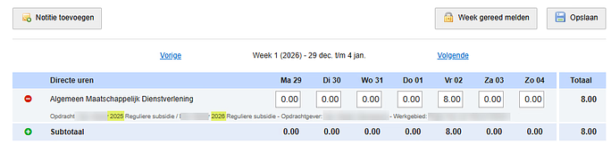 In de vorige versie van RegiTijd kon het gebeuren dat er een fictieve week 53 werd toegevoegd wanneer de laatste dagen van december al in het nieuwe jaar vielen. Die extra week had dezelfde datums als week 1, wat voor verwarring zorgde: moest je nou in week 53 of week 1 tijd registreren?