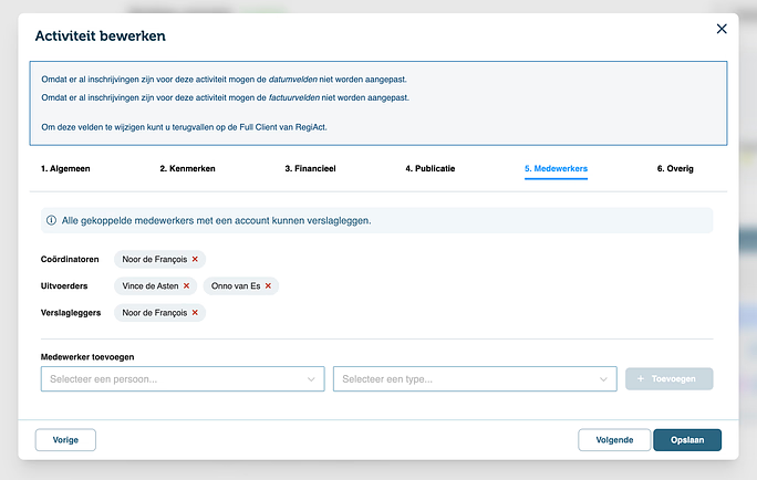 Toevoegen van medewerkers bij het aanmaken van een activiteit