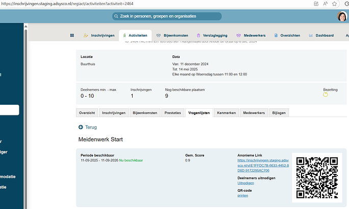 - De QR-code om het invullen van een vragenlijst te starten is nu direct zichtbaar bij een activiteit in RegiAct. Dat scheelt een hoop onhandig overtypen.