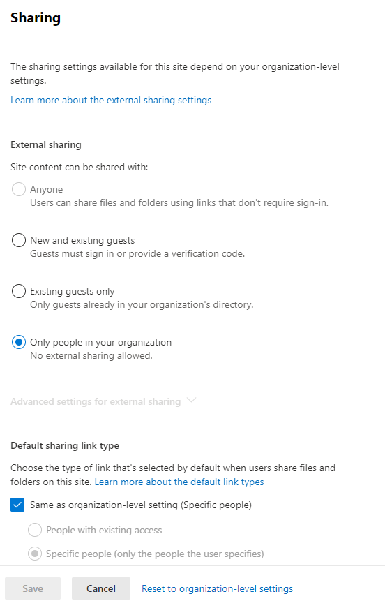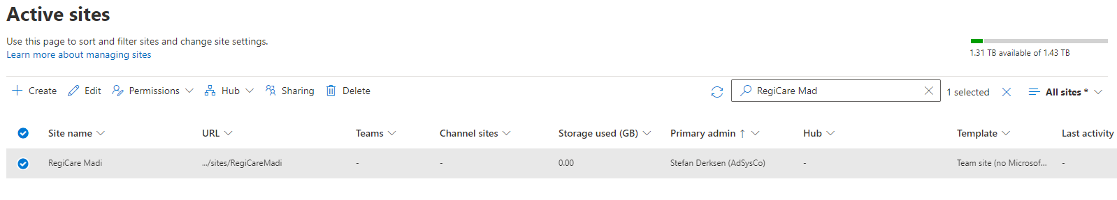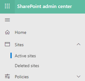 Vanuit het SharePoint admin center zijn via het scherm Sites - Active Sites de instellingen voor het delen te configureren.