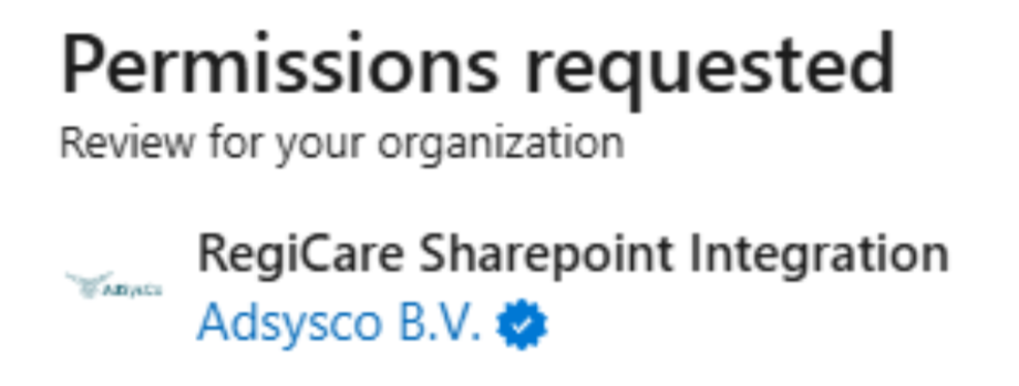 Geef via de deze link toestemming voor het gebruik van de RegiCare Sharepoint Integration app, hiervoor is een global admin nodig!