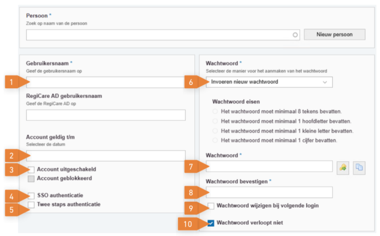 Elke gebruiker die een inlogaccount moet krijgen moet eerst als persoon in RegiCare worden ingevoerd. Dit wordt gedaan door in de module RegiCRM onder de tegel “Personen” een nieuwe persoon in te voeren. Uiteraard moet eerst worden gezocht of de persoon niet al bestaat; we willen een persoon uiteraard maar één keer in RegiCare hebben staan.