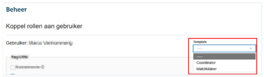 Als voor “Rollen beheren” is gekozen, kan een “Template” worden gekoppeld aan de gebruiker. Er zijn twee beschikbare templates: