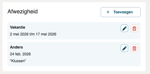 - Betrouwbare planning: Afwezigheid blijft overzichtelijk en correct geregistreerd.