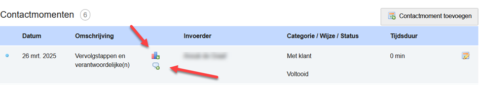 Voorheen moest een contactmoment worden toegevoegd. Na het opslaan verschenen, afhankelijk van de inrichting van de organisatie, één of meerdere icoontjes.